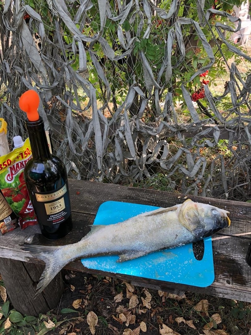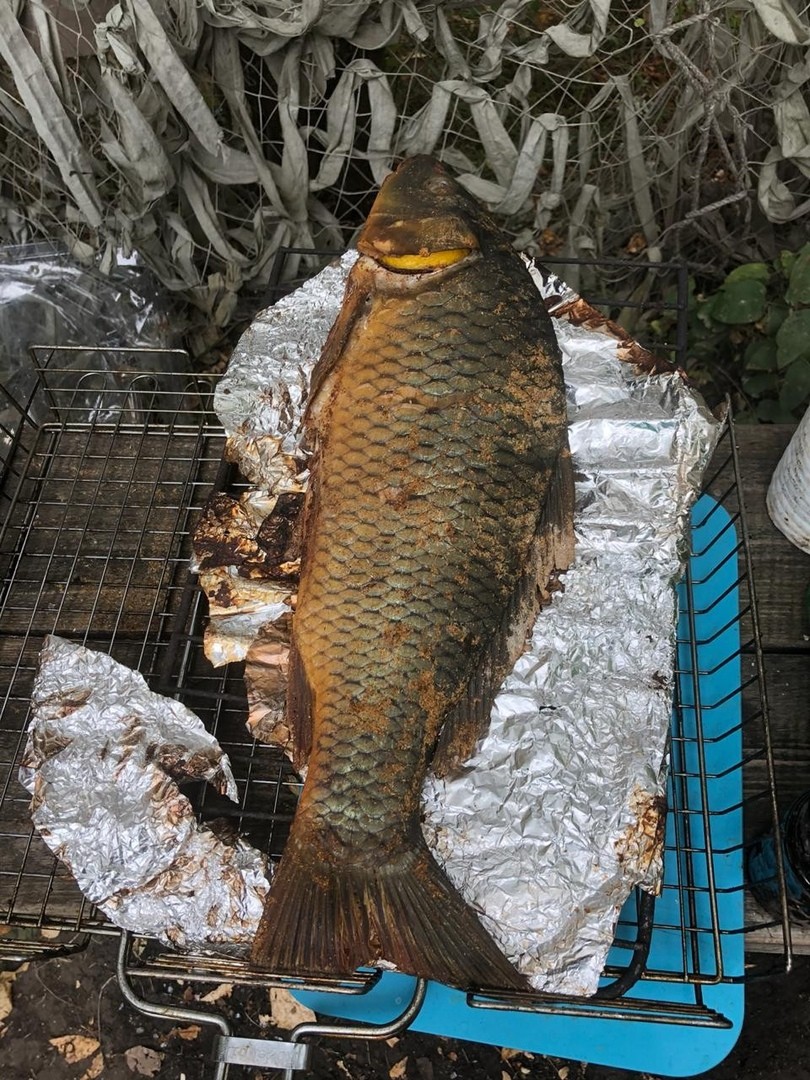 Пока толстолоб запекается,первый пойманый рыб уже готов!
