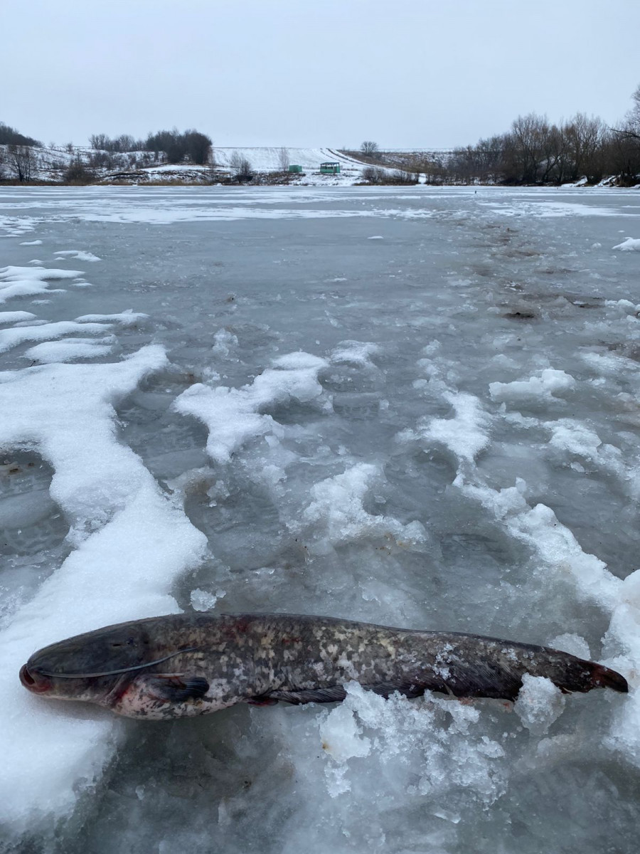 22.12.2021 Толщина льда на пруду 8см, ловится карась 250-300гр. Попадается и судак на жерлицы.