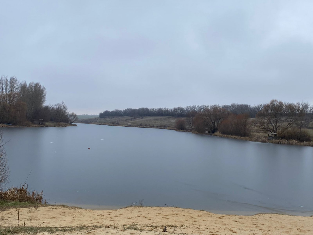 Пруд постепенно покрывается льдом, на данный момент его толщина 2 см.