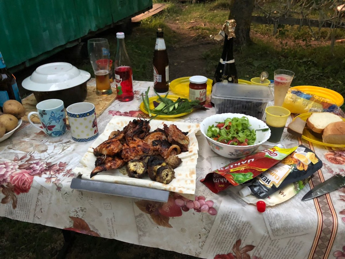 Шашлык и еда на свежем воздухе, как хороший способ отметить завершение рыбалки.