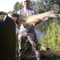 21.08.2017 г. В минувшую субботу удача улыбнулась Руслану Тутареву из Ельца (на фото). На кукурузу польстился белый амур. После продолжительной борьбы (поводковая леска 0,25!) в подсаке оказался экземпляр весом чуть более 10 кг.